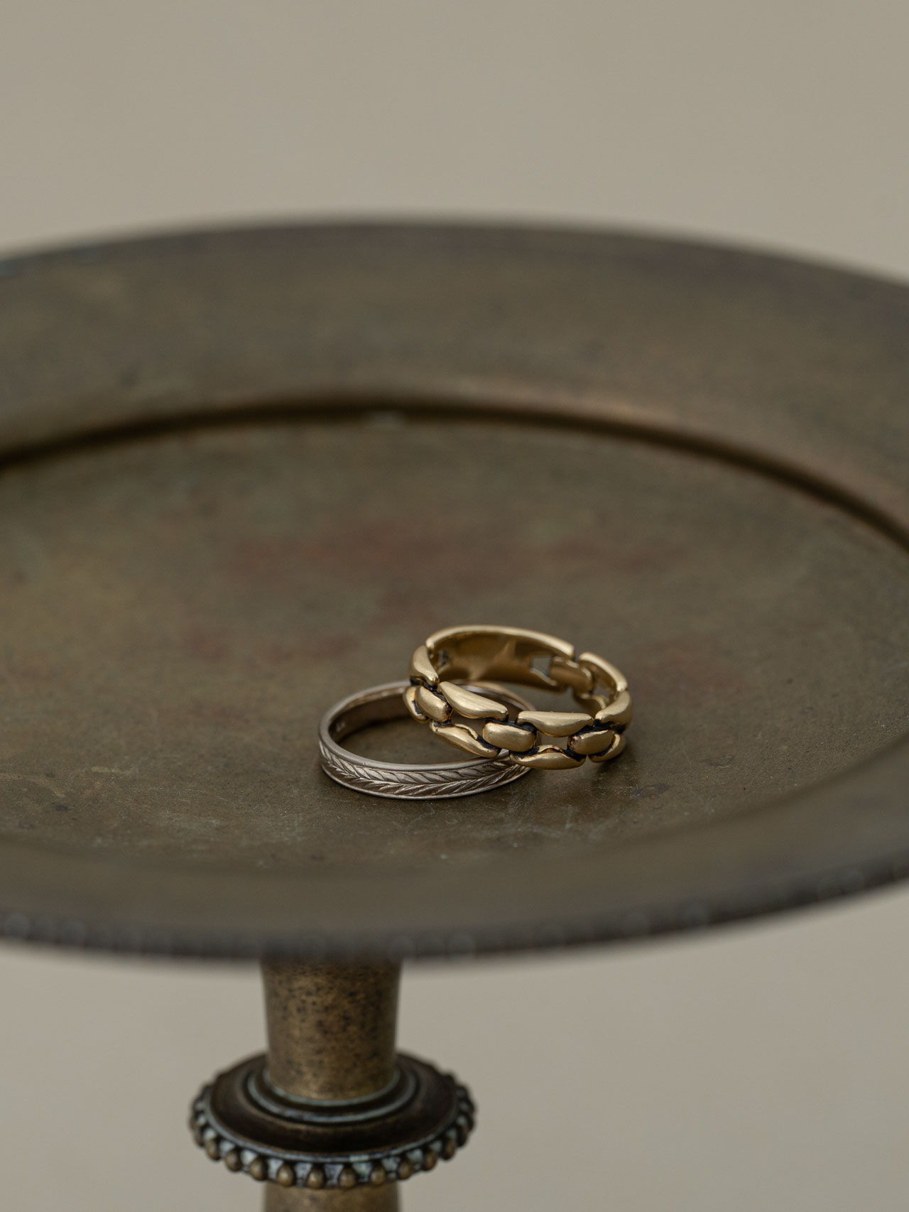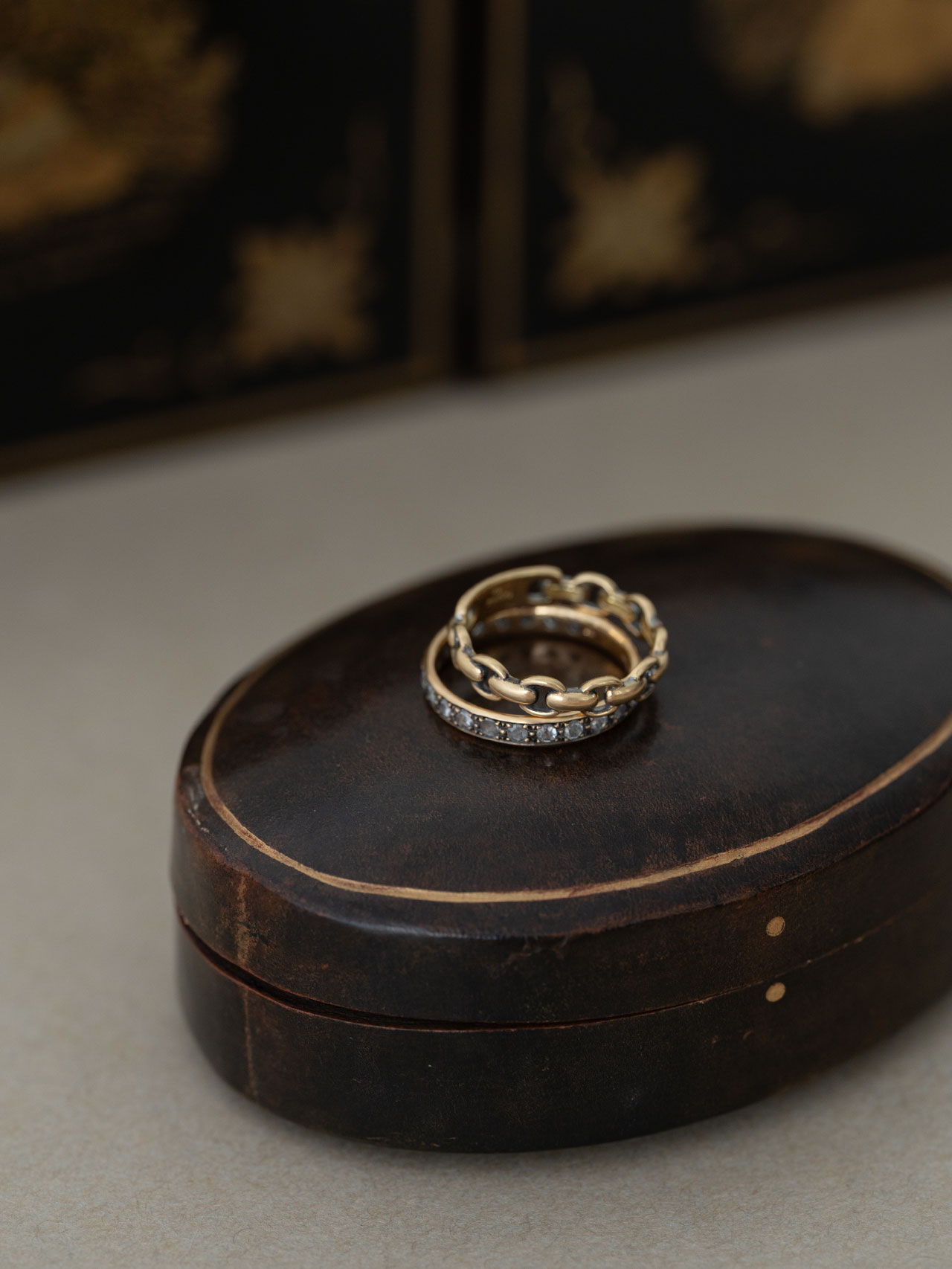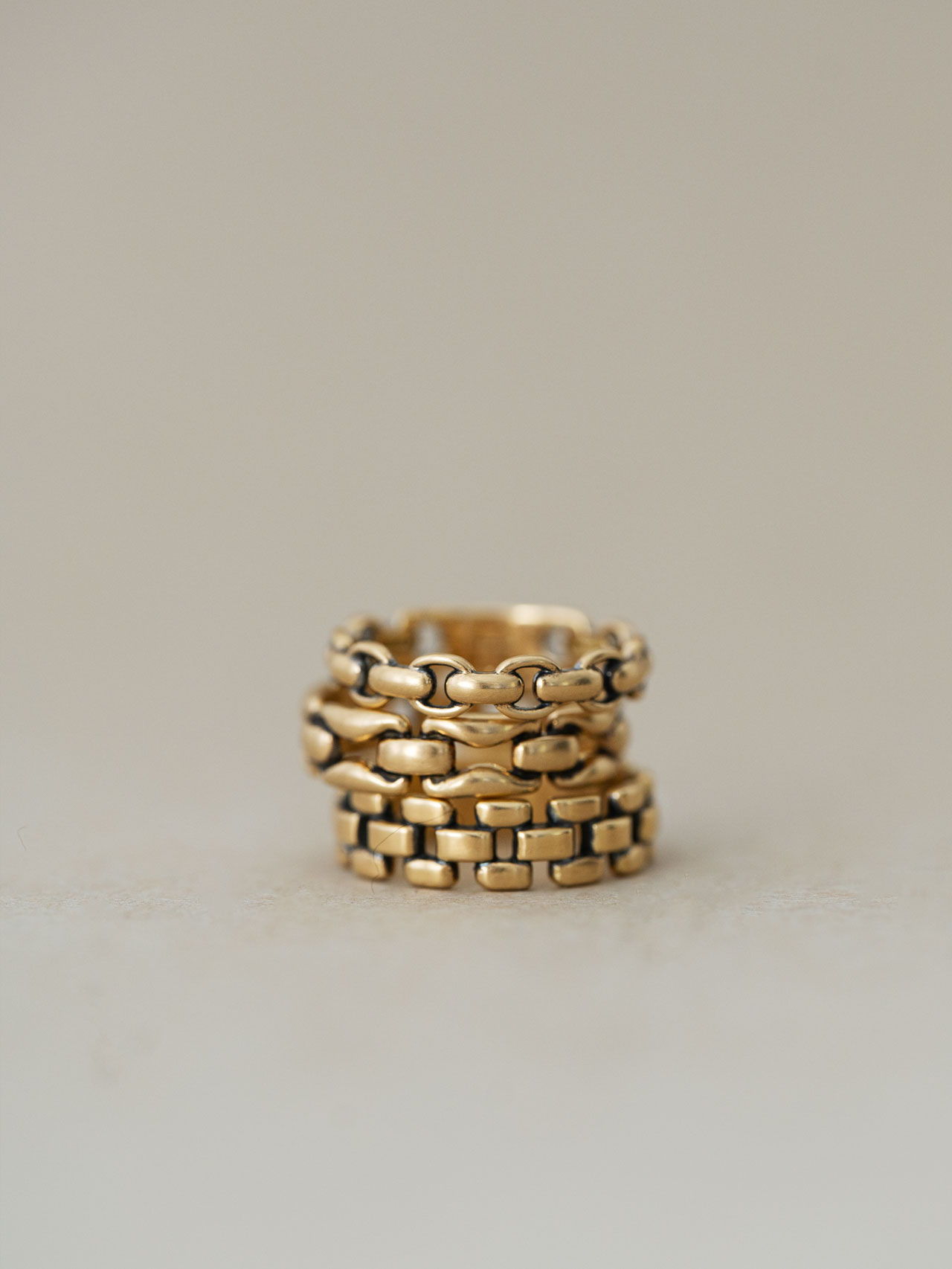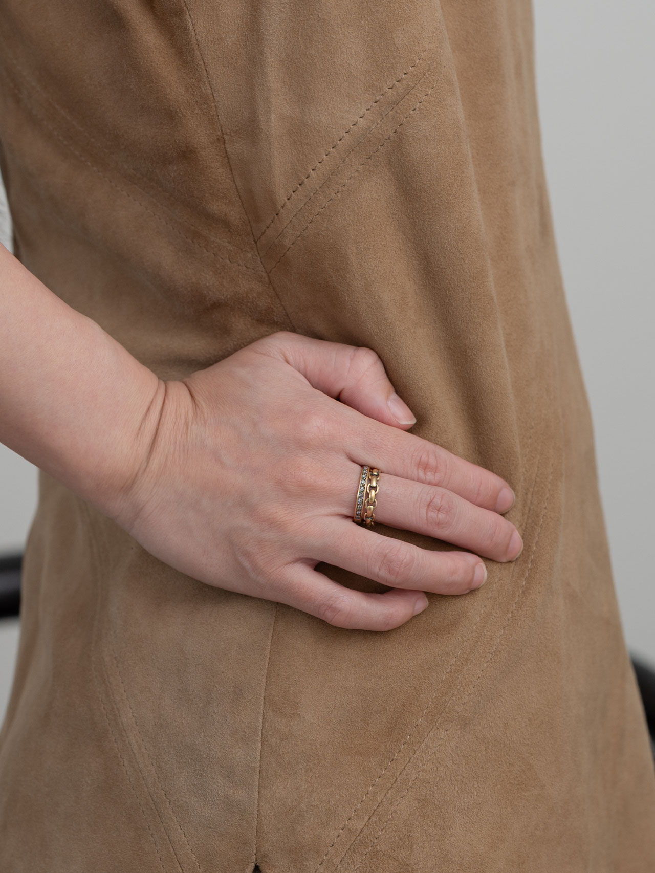 〈Chain〉のほどよいボリュームや、ほのかなクラシックさ、時代に左右されにくい佇まいは、今の自分だけでなく、まだ見ぬ未来の自分にも相応しくなるように。一周近く同じ形を連ねているからこそ、さまざまなものを受けいれてくれる。例えば、若い日の自分が選んできた華奢なものも。過去から今へ、今から未来へ、ずっと繋げてくれるようなアイテムなのだと、アップデートを繰り返しながら強く感じている。