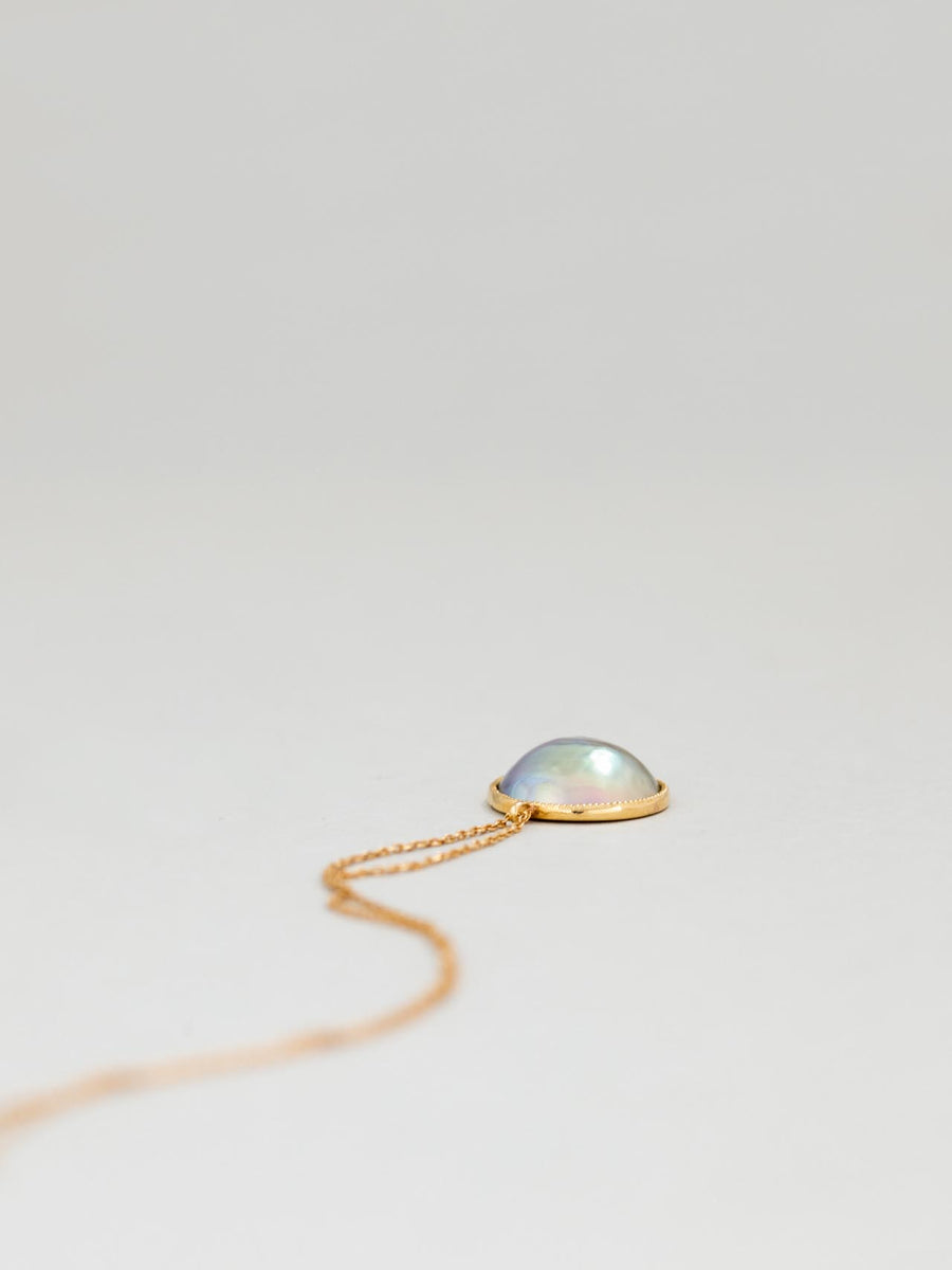 ‘21ss LABO「自由なかたちの真珠展」のために製作したアイテムです。定番の真珠とはひと味異なる、個性豊かな色や形を生かしています。古くから見る者を魅了してきたその自然美に想いを馳せ、真珠の形になるべく手を加えず、ディテールにも古代に発祥する技法や文様、デザインをあしらいました。