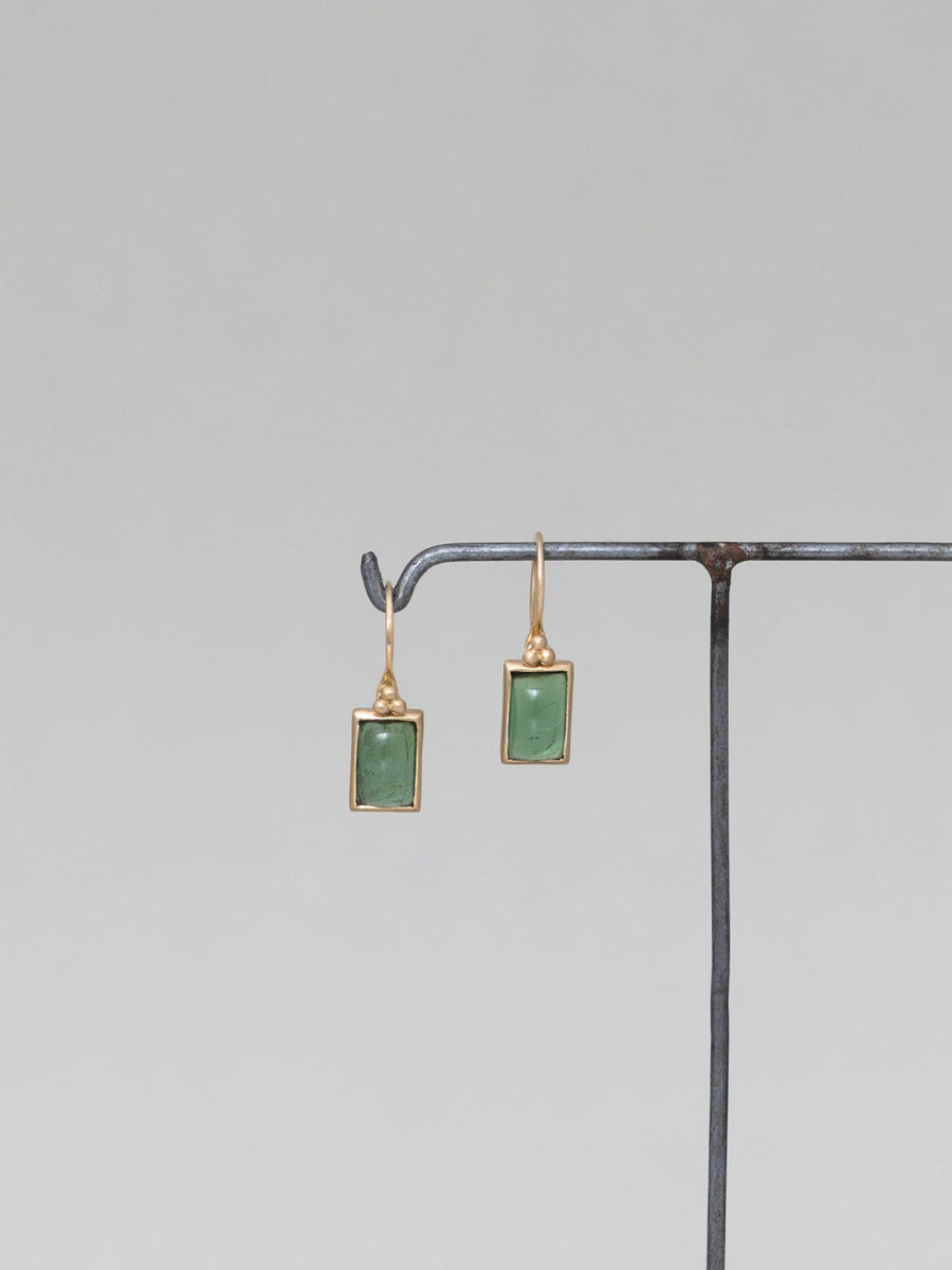 つるりと磨き上げたトルマリンをピアスに仕立てました。クラックや気泡といった個性が生み出す質感、そして各々の色彩の艶めきをお愉しみください。フックと石の間に粒金のディテールを添えています。